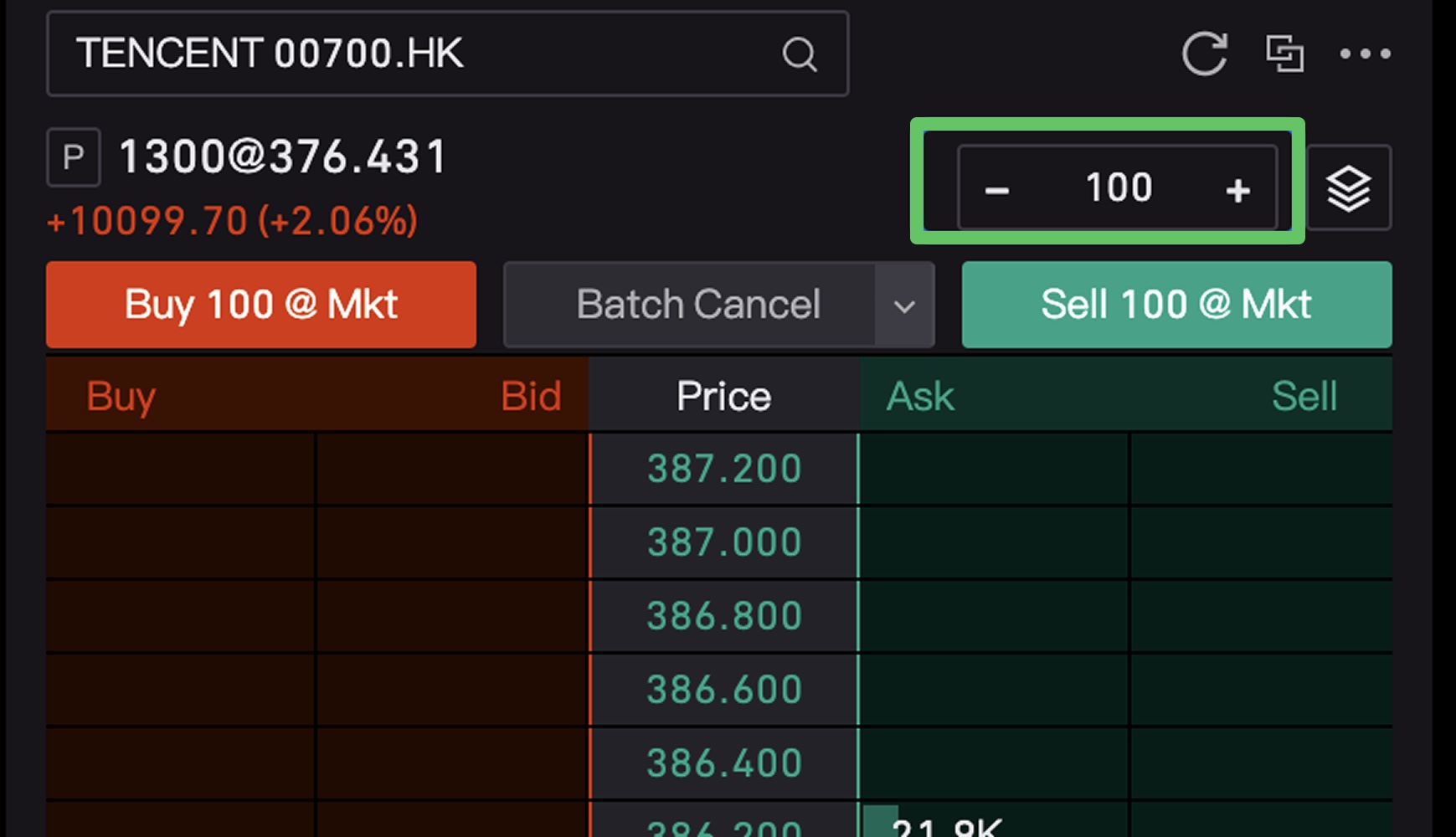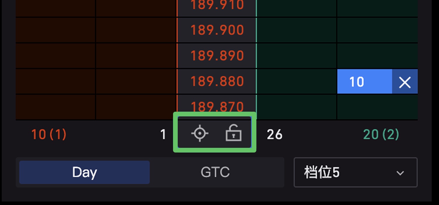 You can click to place an order directly at the desired price on the market depth board. After placing the order, the corresponding order quantity will be displayed.